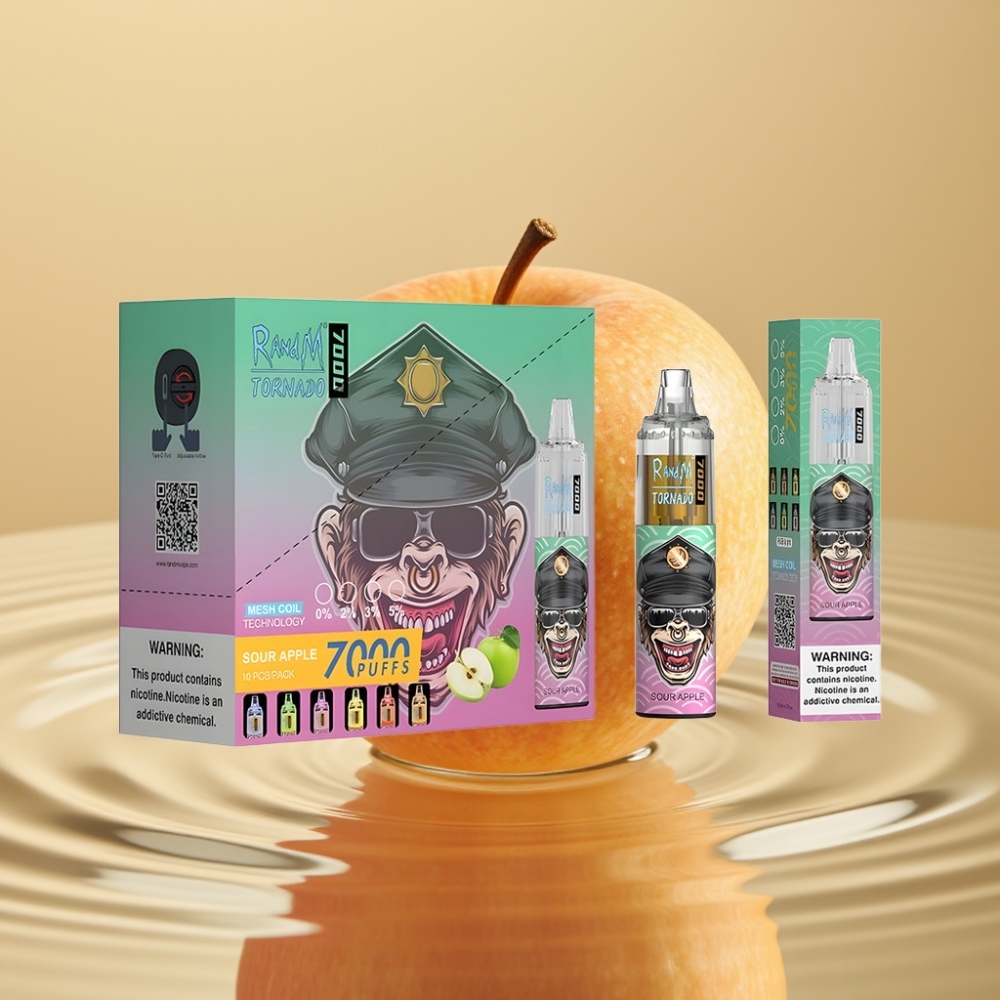 Каталог| Горещ списък| RANDM| RandM Fumot Tornado 7000| Fumot Tornado 7000 Еднократна вейп с кисел ябълков вкус и въздушно регулиране
